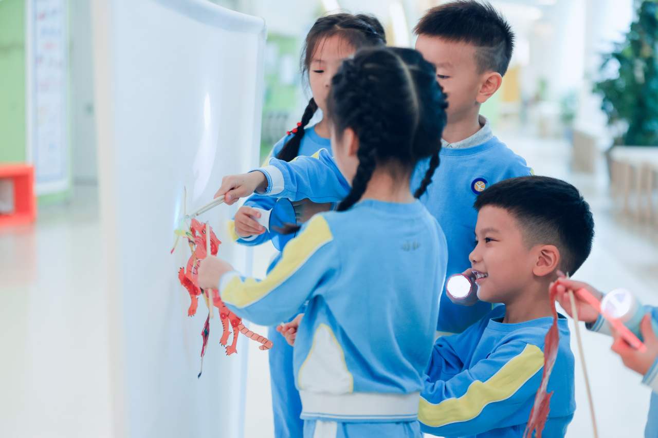 The children in Middle and Senior classes walked hand in hand, leisurely entering a carefully planned festival featuring intangible cultural heritage. The agility of shadow puppets, the joy of Yangge Dance, the elegance of blue and white porcelain, the charm of traditional Chinese painting...... The children shuttled through various exhibition areas, using their hearts to feel and comprehend those cultural treasures that have been passed down for thousands of years.